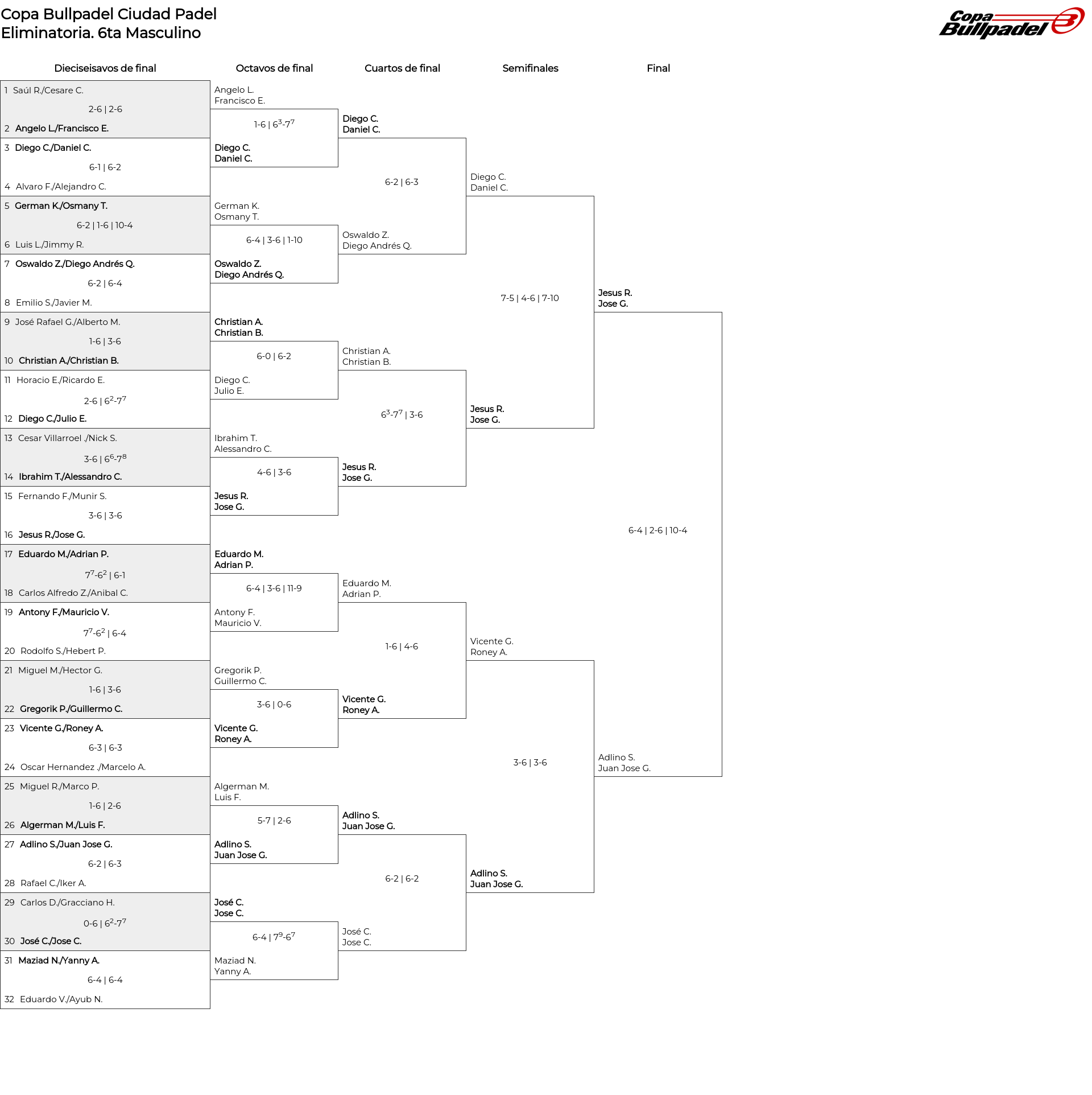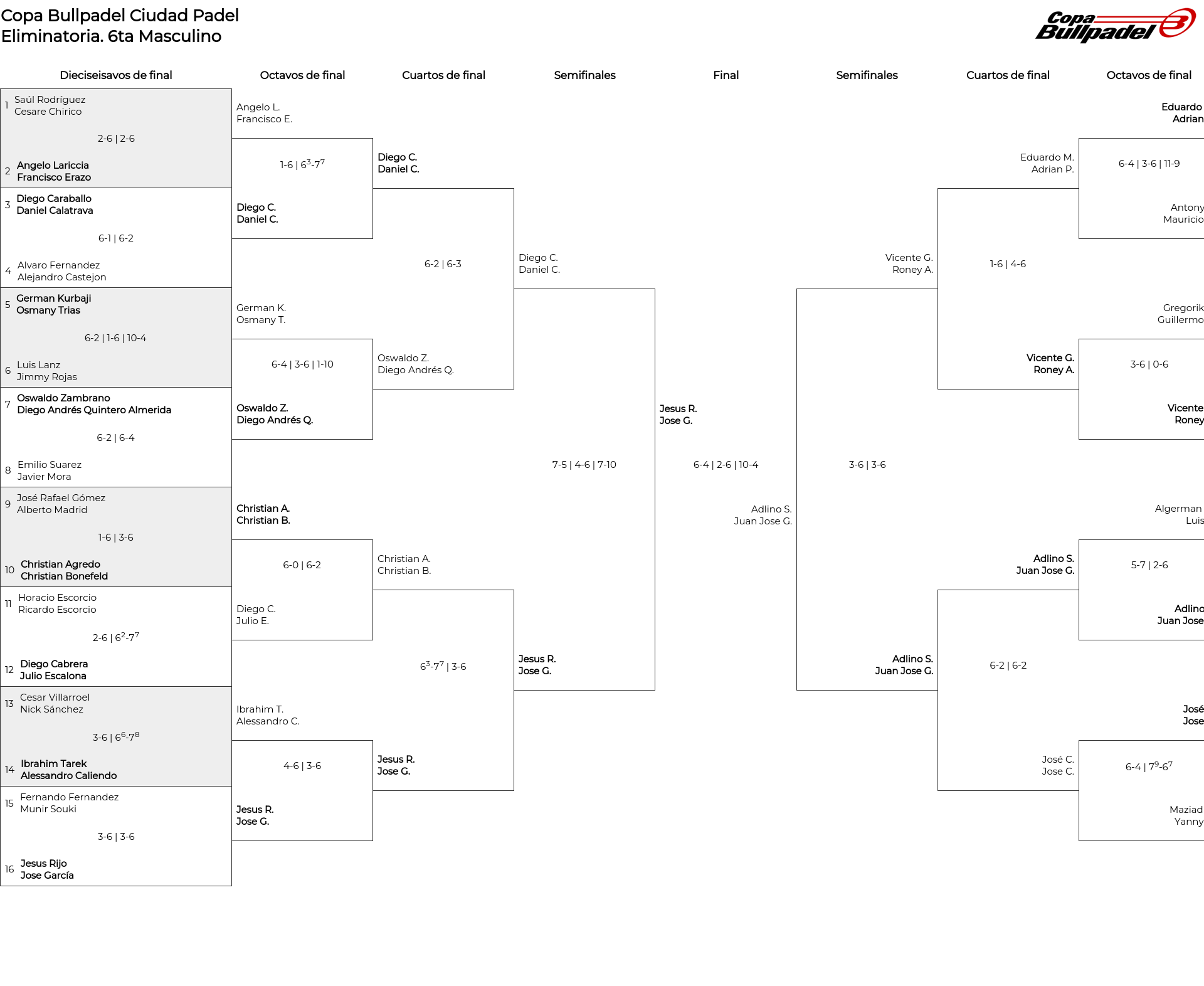 Cuadro principal 6ta Masculino