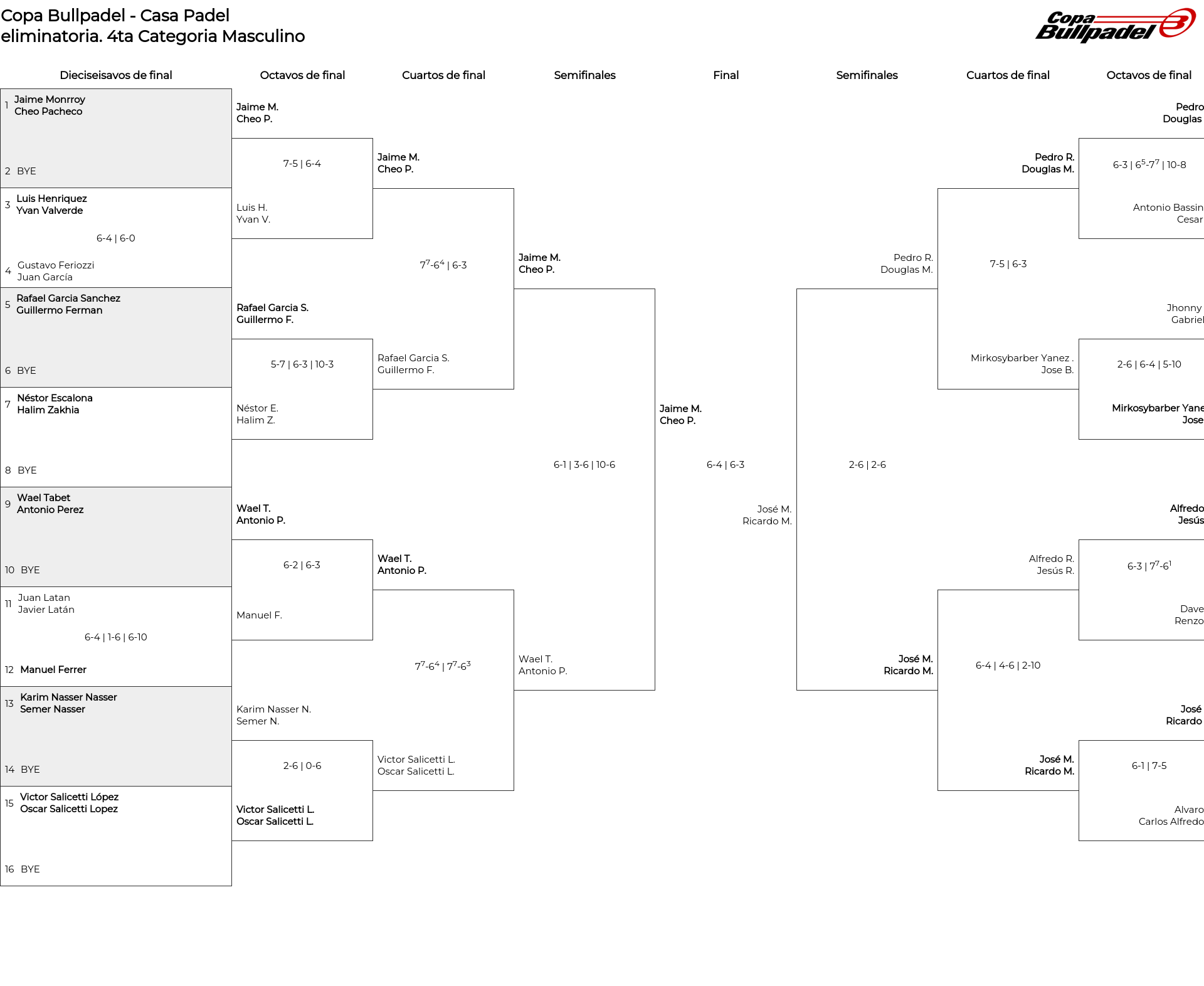 4ta Categoria Masculino . Desde 30/09/2024 16:00 hasta 06/10/2024 22:00