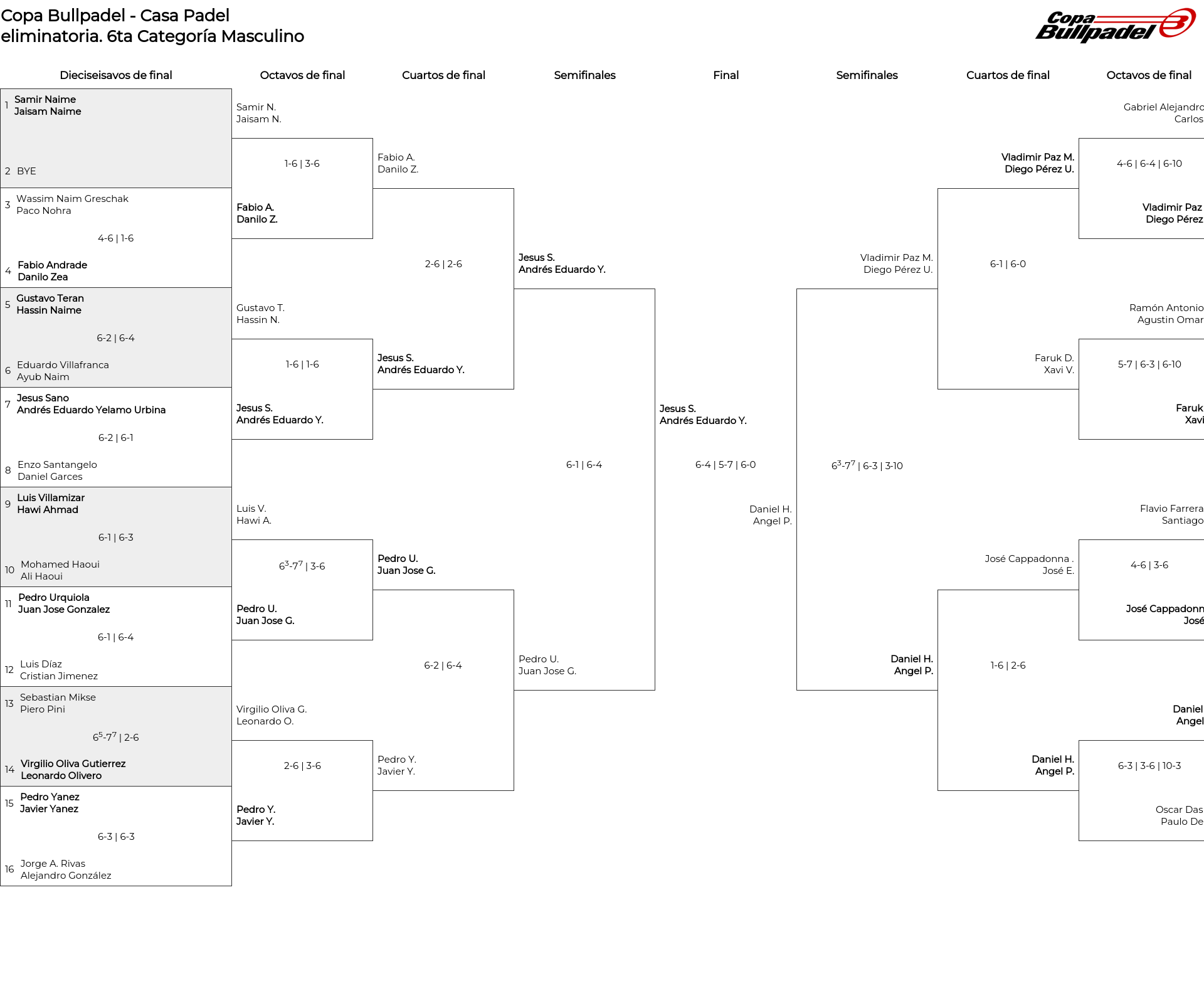 Cuadro principal 6ta Categoría Masculino