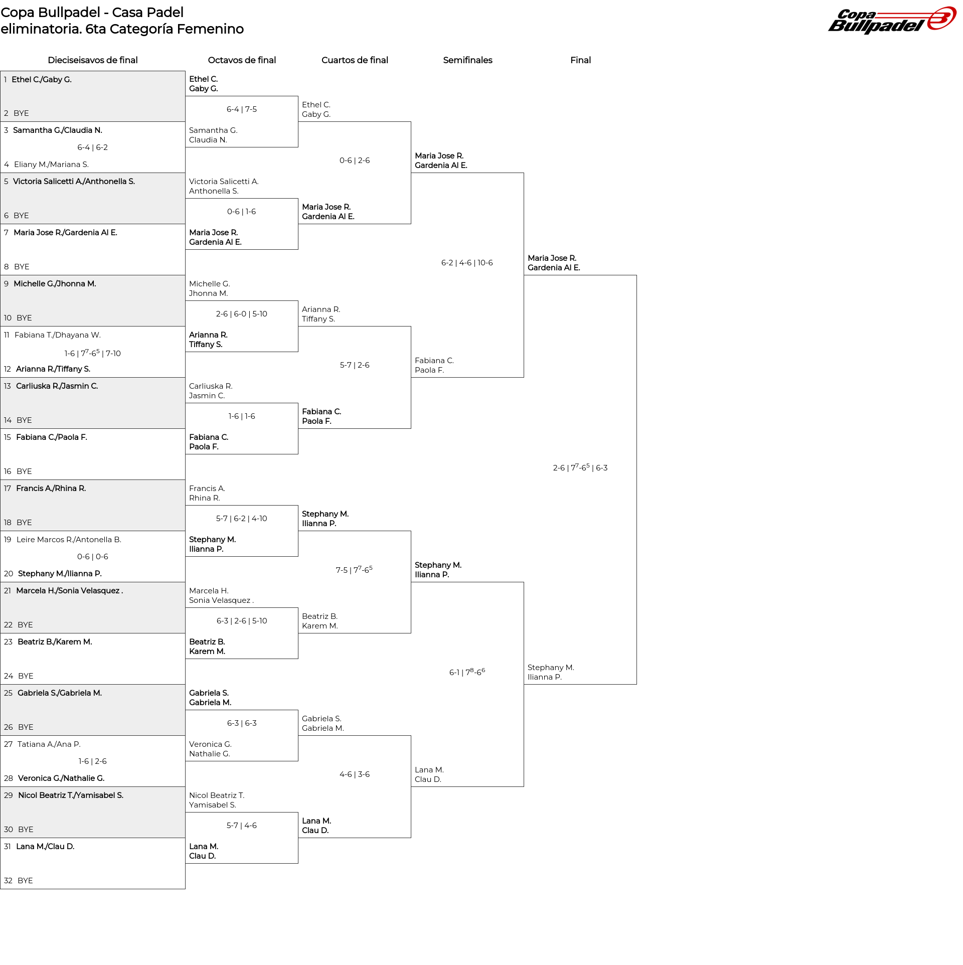 Cuadro principal 6ta Categoría Femenino
