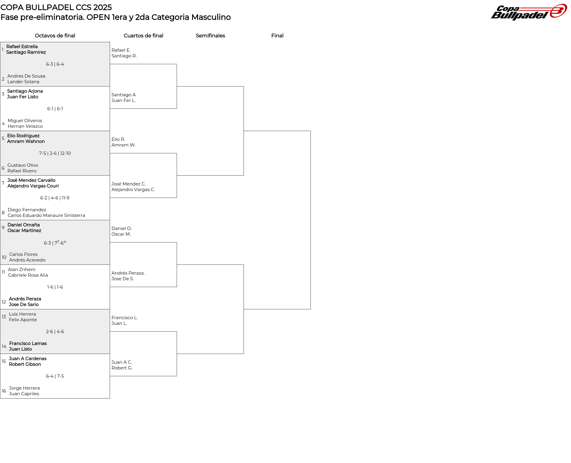 Cuadro principal OPEN 1era y 2da Categoria Masculino