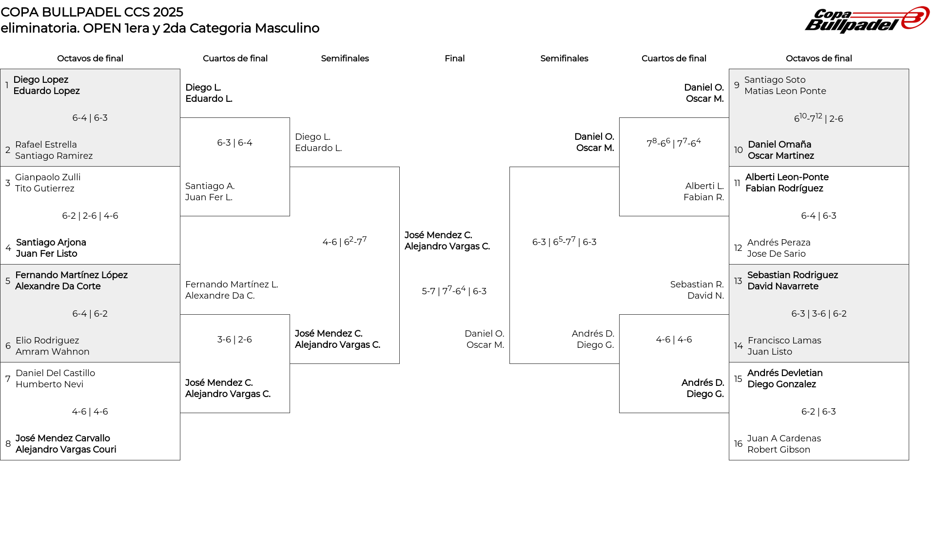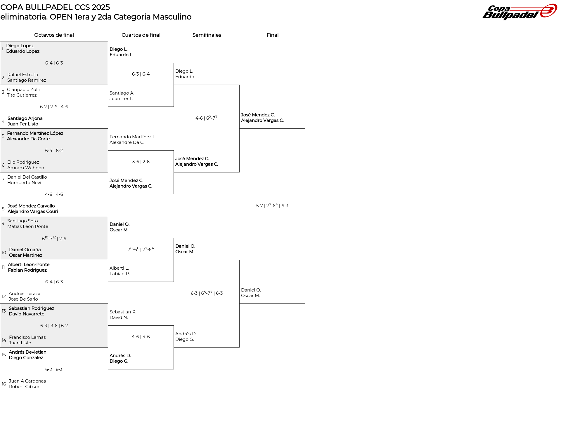Cuadro principal OPEN 1era y 2da Categoria Masculino