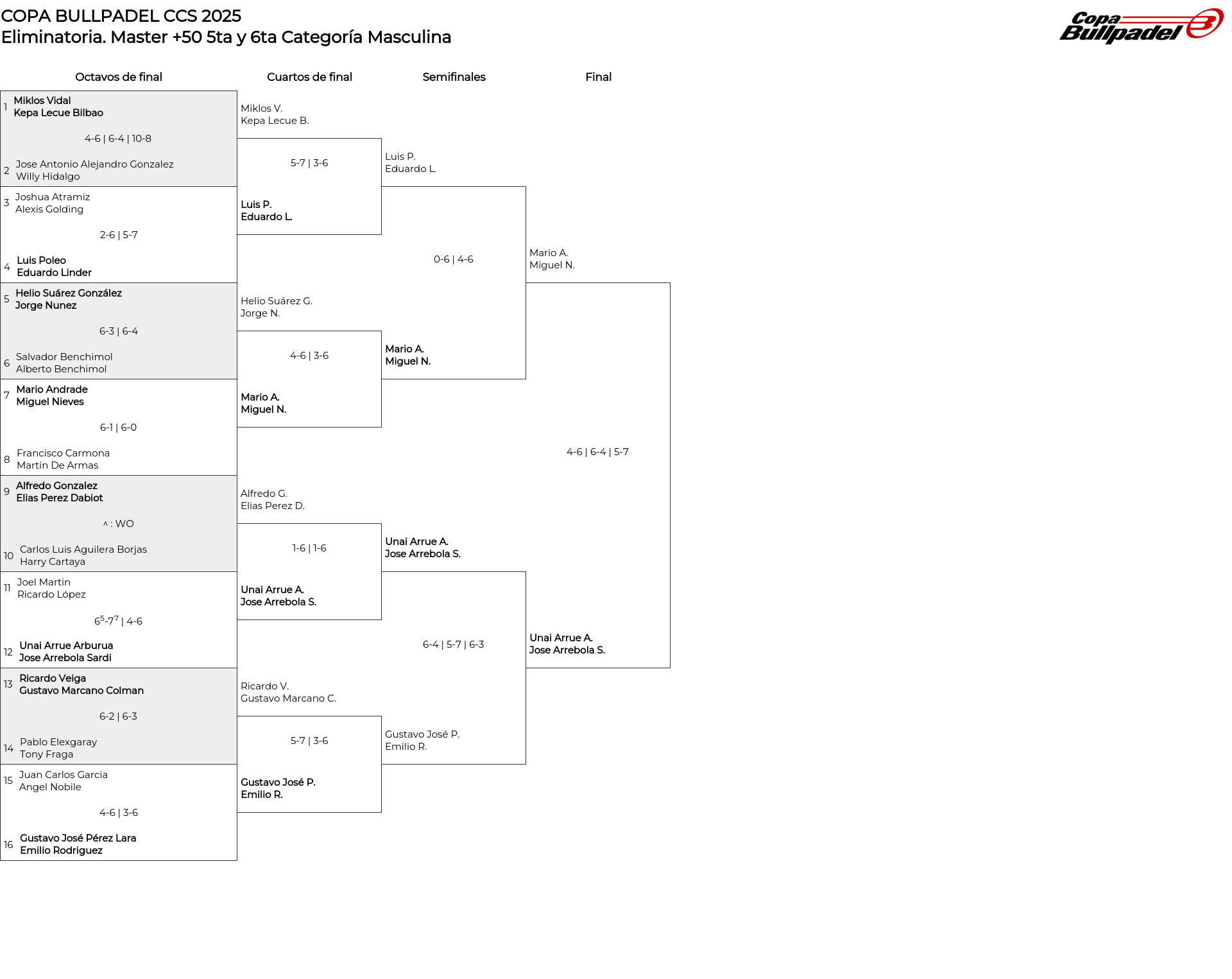 Cuadro principal Master +50 5ta y 6ta Categoría Masculina