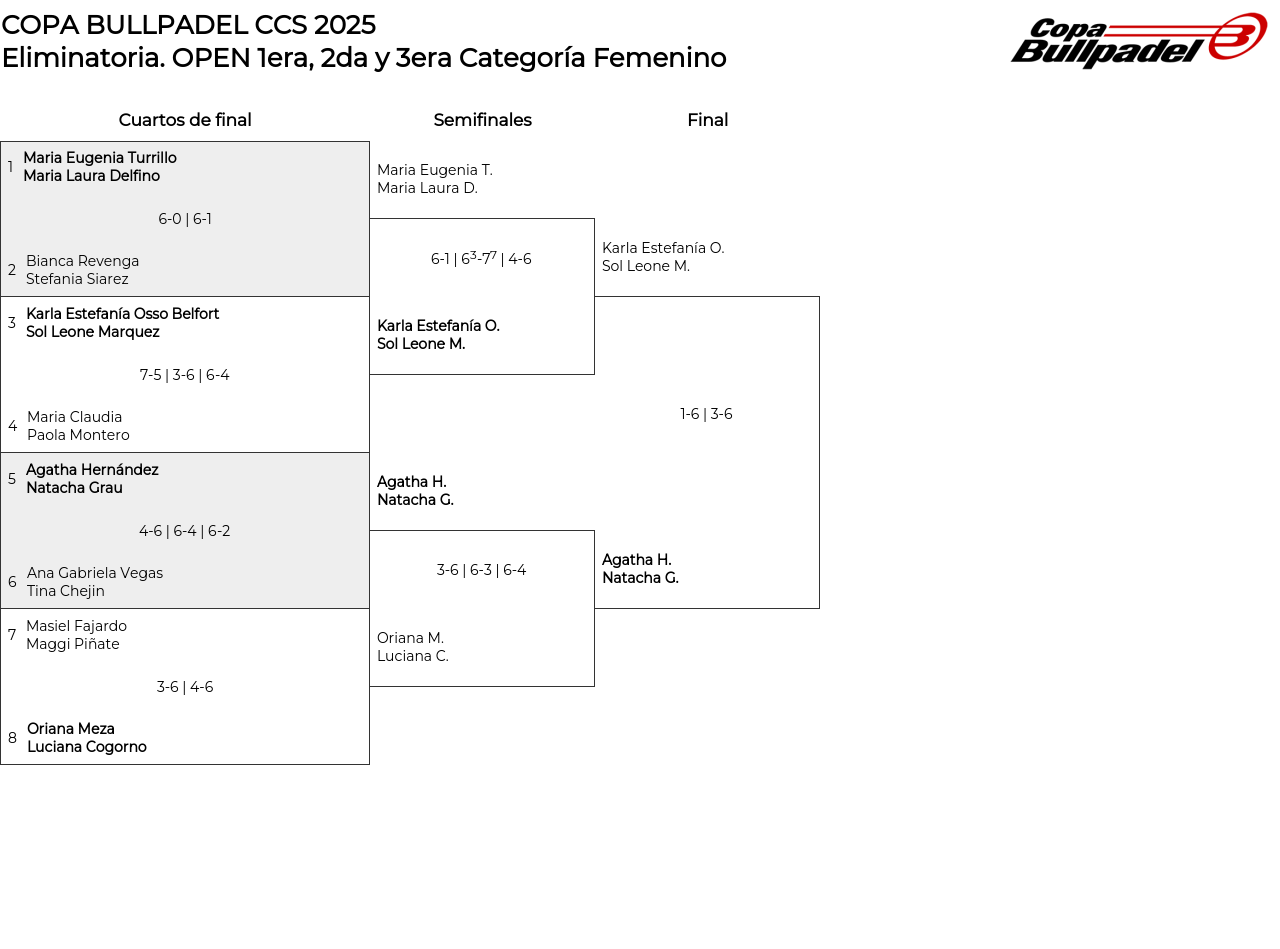 Cuadro principal OPEN 1era, 2da y 3era Categoría Femenino